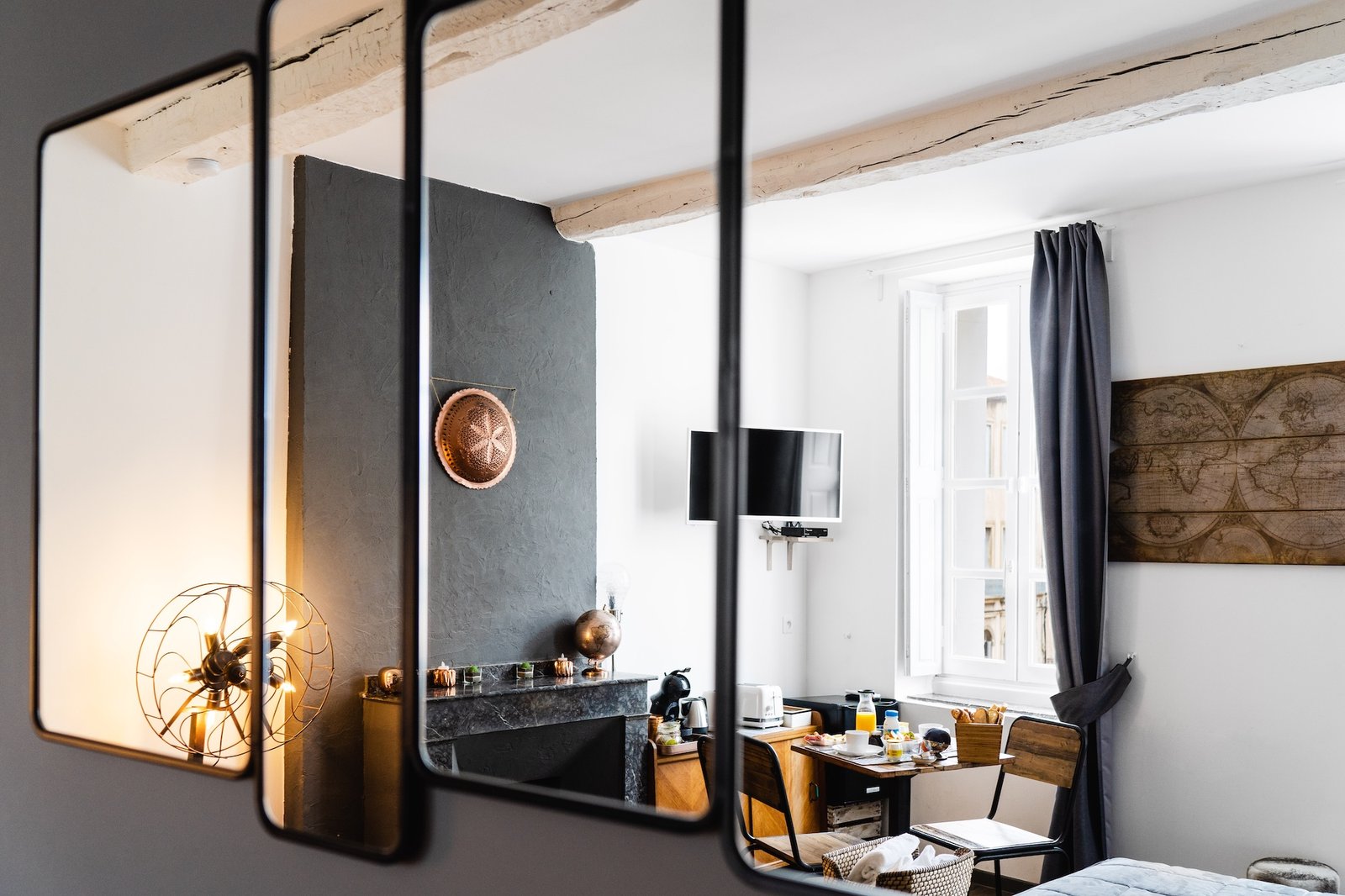Située au 2ème étage, la Suite Junior EXPLORATEURS est conçue pour les voyageurs dans l’âme. Dès le seuil franchi, son décor inspiré des grands explorateurs — malles anciennes, cartes et objets du monde — vous transporte ailleurs.
